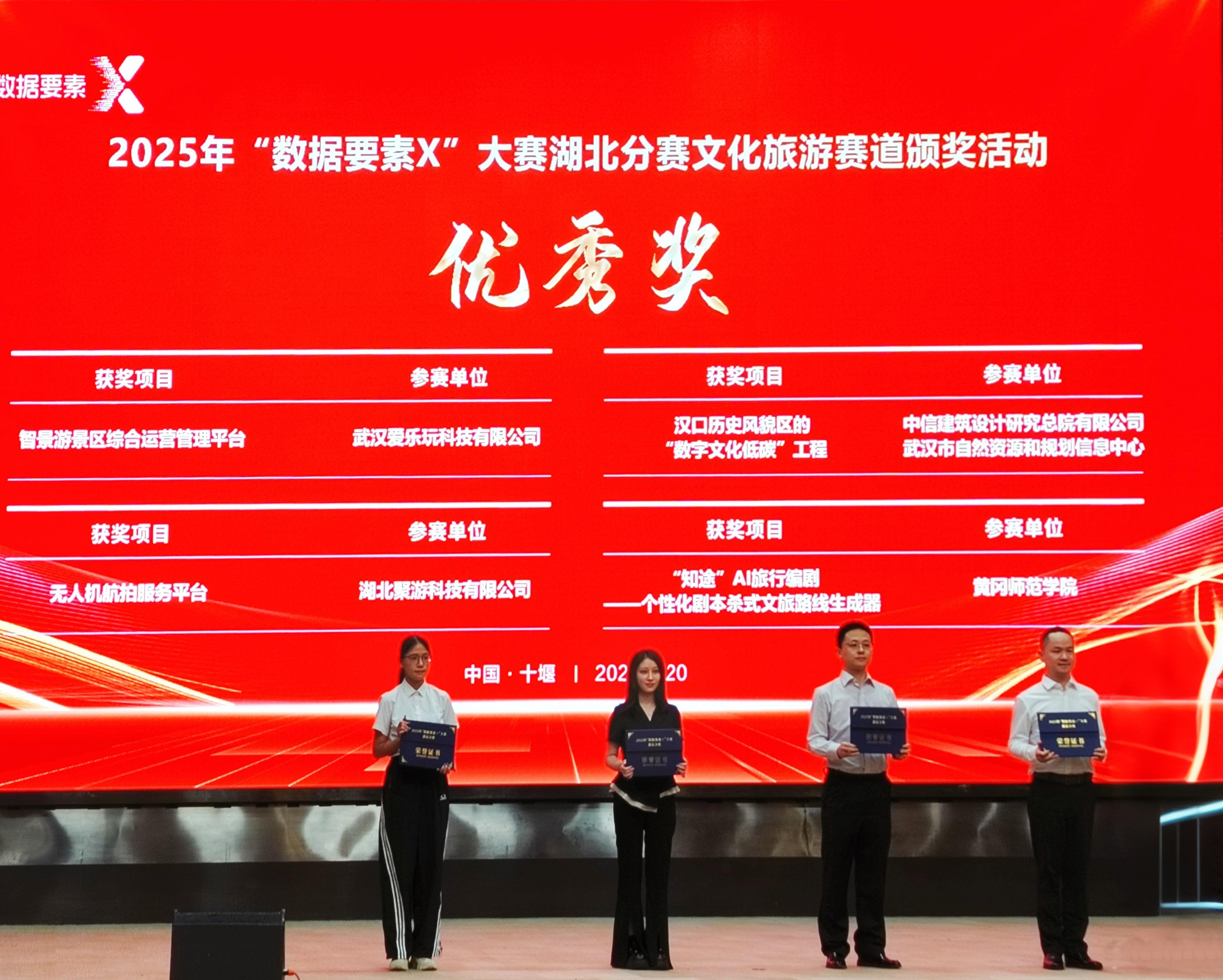 8月20日,由湖北省數(shù)據(jù)局、湖北省文化和旅游廳、十堰市人民政府主辦的2025年“數(shù)據(jù)要素×”大賽湖北分賽文化旅游賽道決賽活動在十堰成功舉行。數(shù)旅集團參賽項目均獲得獎項,湖北文旅全域智慧旅游綜合服務平臺獲二等獎(賽道第2名)、“逍遙武當”VR大空間沉浸式體驗項目獲三等獎(賽道第4名)、無人機航拍服務平臺和智景游景區(qū)綜合運營管理平臺獲優(yōu)秀獎。在參賽數(shù)量、入圍率及獎項層級上均實現(xiàn)顯著突破,充分彰顯了公司在數(shù)據(jù)要素領域的技術積累與創(chuàng)新實力。