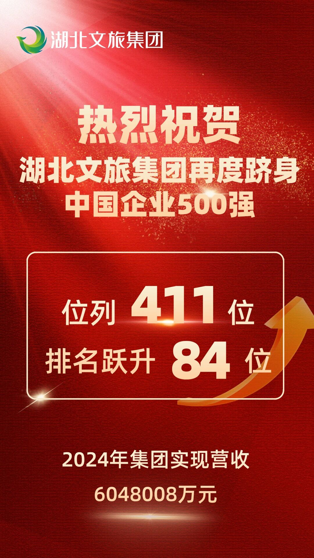 湖北文旅集團(tuán)再入圍中國(guó)企業(yè)500強(qiáng),排名躍升84個(gè)位次。9月15日,中國(guó)企業(yè)聯(lián)合會(huì)、中國(guó)企業(yè)家協(xié)會(huì)連續(xù)第24次向社會(huì)發(fā)布了“中國(guó)企業(yè)500強(qiáng)” (以下簡(jiǎn)稱“企業(yè)500強(qiáng)”)榜單。湖北文旅集團(tuán)連續(xù)第二年入圍,排名升至411位,比去年躍升了84個(gè)位次。近年來,集團(tuán)年?duì)I收、經(jīng)營(yíng)性利潤(rùn)均保持20%以上高位增長(zhǎng),特別是2024年集團(tuán)投資、營(yíng)收、接待游客量三個(gè)核心指標(biāo)增長(zhǎng)100%以上,當(dāng)年接待游客量突破3100萬人次,總資產(chǎn)達(dá)1000億元。集團(tuán)連續(xù)七年獲評(píng)全國(guó)旅游集團(tuán)20強(qiáng),連續(xù)兩年躋身“中國(guó)企業(yè)500強(qiáng)”。