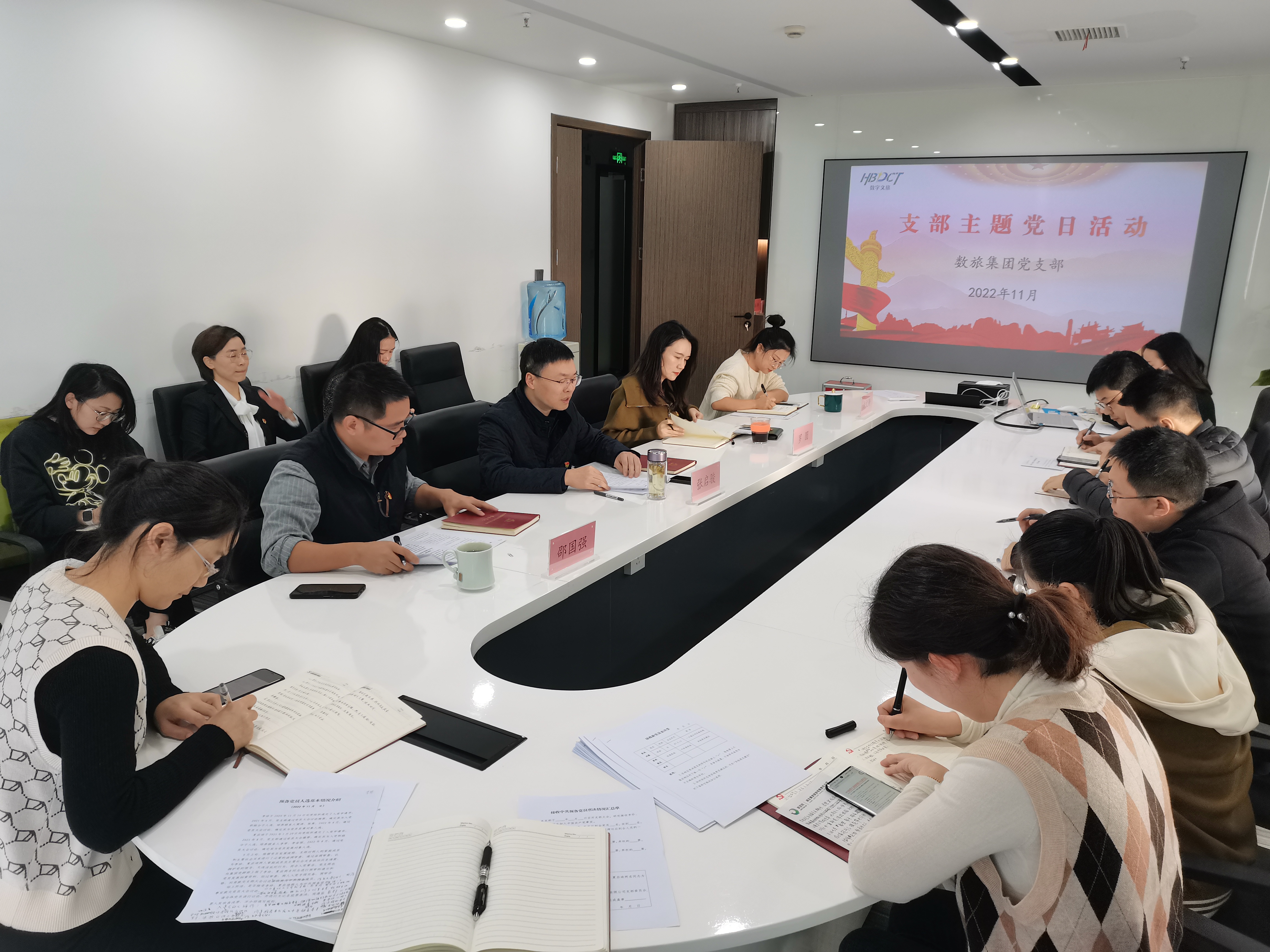 11月17日上午,數(shù)旅集團(tuán)黨支部以“學(xué)習(xí)二十大 永遠(yuǎn)跟黨走 奮進(jìn)新征程 建設(shè)新文旅”為主題開展了11月份主題黨日活動(dòng)。黨支部書記張啟駿主持會(huì)議,支部全體黨員、入黨積極分子參加了本次學(xué)習(xí)活動(dòng)。
