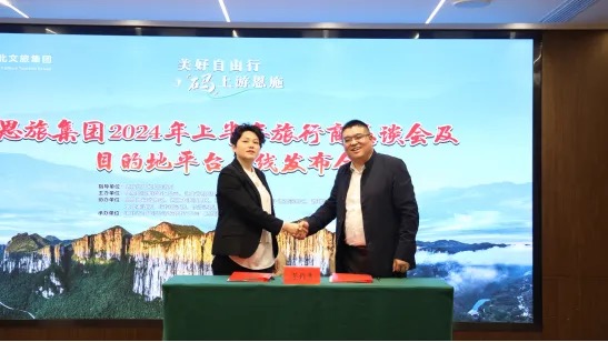 發(fā)布會(huì)上,恩旅集團(tuán)營(yíng)銷公司向與會(huì)領(lǐng)導(dǎo)和嘉賓介紹了恩施旅游目的地平臺(tái)建設(shè)背景、相關(guān)功能和操作模式等。巴楚國(guó)旅、歡硒俠國(guó)旅、想游國(guó)旅、華美達(dá)酒店等旅行商及酒店代表與恩旅集團(tuán)營(yíng)銷公司簽訂了平臺(tái)銷售合作協(xié)議。