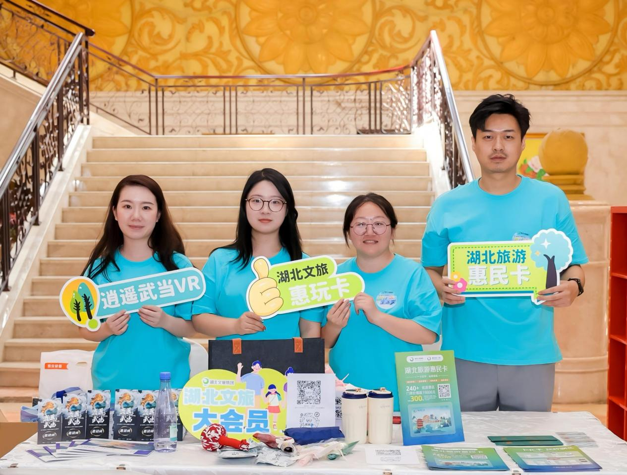 數(shù)旅集團在現(xiàn)場擺展,工作人員主動介紹“湖北文旅大會員”權(quán)益、湖北文旅惠玩卡產(chǎn)品、湖北旅游惠民卡產(chǎn)品和《逍遙武當(dāng)》VR大空間沉浸式體驗項目,吸引了大量游客駐足。