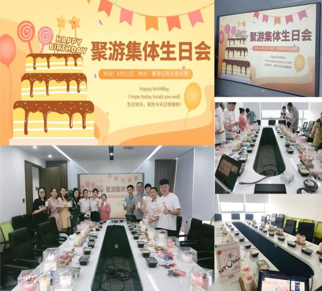 6月11日下午,濃情仲夏,炎之將至。聚游科技公組織開展活動,為1到6月份生日的員工舉辦了集體生日會,這是公司為豐富員工的精神文化生活,活躍工作氛圍特別舉辦的別開生面的生日會,同時也展現(xiàn)了公司底蘊(yùn)深厚的企業(yè)文化和人文關(guān)懷。下午,公司大會議室里熱鬧非凡,二十多份蛋糕、奶茶、水果拼盤、成箱的零食大滿貫,讓人眼花繚亂,迫不及待。集體生日會上,會場布置簡單而不失隆重,充滿溫馨。二十多位員工的照片一一展現(xiàn)在PPT投屏上,小小的生日會,讓員工們在忙碌生活中收獲一份“小確幸”,也讓大家的心凝聚在一起,豐富了聚游科技公司“家文化”的內(nèi)涵。