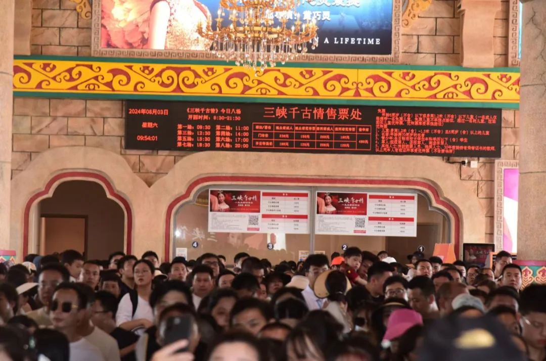 三峽千古情一個(gè)景區(qū)帶火一座城。8月3日,大型歌舞《三峽千古情》一天連演8場(chǎng),創(chuàng)湖北大型旅游演藝全新紀(jì)錄。三峽千古情景區(qū)熱度不斷狂飆,在多個(gè)熱門榜單中位居第一,成為湖北旅游熱門目的地,撬動(dòng)宜昌光速出圈、火爆全國(guó)。