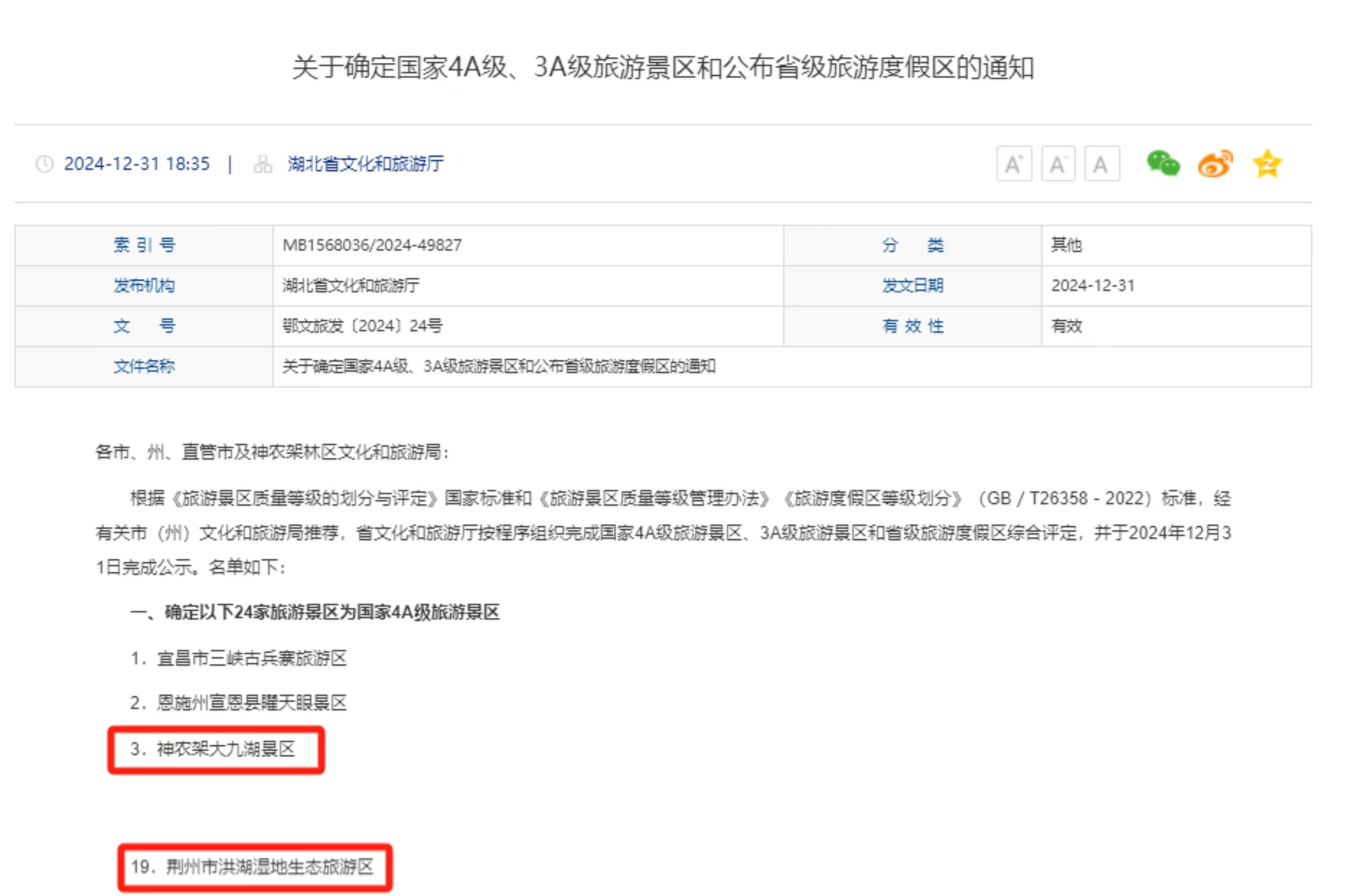 湖北文旅集團(tuán)新增兩家國家4A級旅游景區(qū)。近日,湖北省文化和旅游廳發(fā)布公告,經(jīng)湖北省旅游景區(qū)質(zhì)量等級評定委員會組織評定,集團(tuán)旗下神農(nóng)架大九湖景區(qū)、荊州市洪湖濕地生態(tài)旅游區(qū)獲評“國家4A級旅游景區(qū)”。圍繞4A創(chuàng)建,神農(nóng)架大九湖景區(qū)堅持生態(tài)科技賦能,堅持升級科普游覽,堅持優(yōu)化服務(wù)管理,塑造突出的生態(tài)旅游品牌形象。洪湖濕地生態(tài)旅游區(qū)對標(biāo)國內(nèi)一流旅游景區(qū),從硬件提檔、軟件提質(zhì)、服務(wù)提升三方面著力,景區(qū)面貌煥然一新。