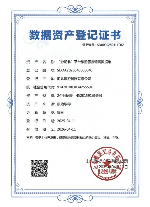 數(shù)旅集團(tuán)實現(xiàn)文旅數(shù)據(jù)資源向資產(chǎn)入表實質(zhì)性突破!近日,湖北數(shù)字文旅集團(tuán)旗下聚游科技公司研發(fā)的“游湖北平臺旅游服務(wù)運營數(shù)據(jù)集”成功取得數(shù)據(jù)資產(chǎn)登記認(rèn)證。該數(shù)據(jù)集源自聚游科技公司承建的湖北省重點文旅數(shù)字化項目“一部手機游湖北”平臺。依托平臺運營積累的海量數(shù)據(jù),涵蓋游客行為分析、景區(qū)實時流量監(jiān)測、消費偏好畫像、文旅服務(wù)評價等核心維度。通過標(biāo)準(zhǔn)化治理、脫敏處理及合規(guī)確權(quán),實現(xiàn)了數(shù)據(jù)資源向資產(chǎn)的轉(zhuǎn)型,為數(shù)據(jù)資產(chǎn)入表奠定了堅實基礎(chǔ)。