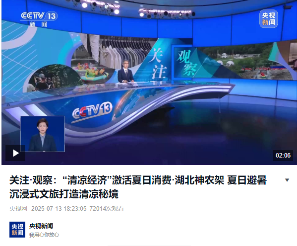 各大媒體齊聚焦:湖北文旅集團景區(qū)出圈。新華社“清龍峽”全球推介、央視CCTV13“山水洞漂”直播、央媒省媒密集點贊神農(nóng)架“20℃避暑+夜經(jīng)濟”,三大權(quán)威媒體一周內(nèi)集中報道湖北文旅集團旗下景區(qū):恩施秘境溯溪、隨州大洪山串洞漂、神農(nóng)架夜游燒烤,形成“白天清涼、夜晚煙火”的立體夏游圖景。官方流量加持下,環(huán)大洪山五大景點門票聯(lián)動減免,跨省自駕半小時直達,為人們提供了多條逃離高溫酷暑的選擇。