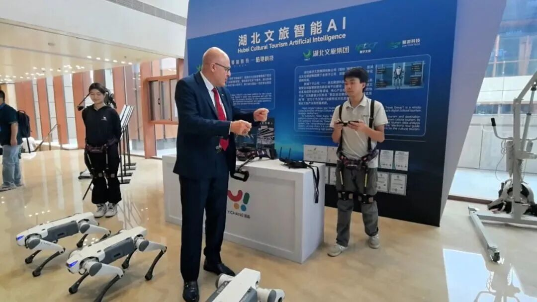 全球旅行商大會宜昌啟幕,湖北文旅集團(tuán)展示“文旅+科技”新體驗(yàn)。9月6日,以“知音湖北 大美長江”為主題的知音湖北?2025全球旅行商大會暨宜昌市文化旅游發(fā)展大會在湖北宜昌召開,本次大會由湖北省文化和旅游廳、宜昌市人民政府聯(lián)合主辦。來自40多個(gè)國家和地區(qū)的旅行商及各界代表共600余人齊聚長江之畔,以“知音”為紐帶共話合作,以行動助力“引客入鄂”戰(zhàn)略,現(xiàn)場多項(xiàng)文旅合作項(xiàng)目集中簽約,為湖北文旅國際化發(fā)展注入強(qiáng)勁動力。湖北文旅集團(tuán)攜多款智能設(shè)備終端亮相大會,其中外骨骼機(jī)器人和機(jī)器狗成為全場焦點(diǎn),吸引了眾多國際嘉賓駐足體驗(yàn)。